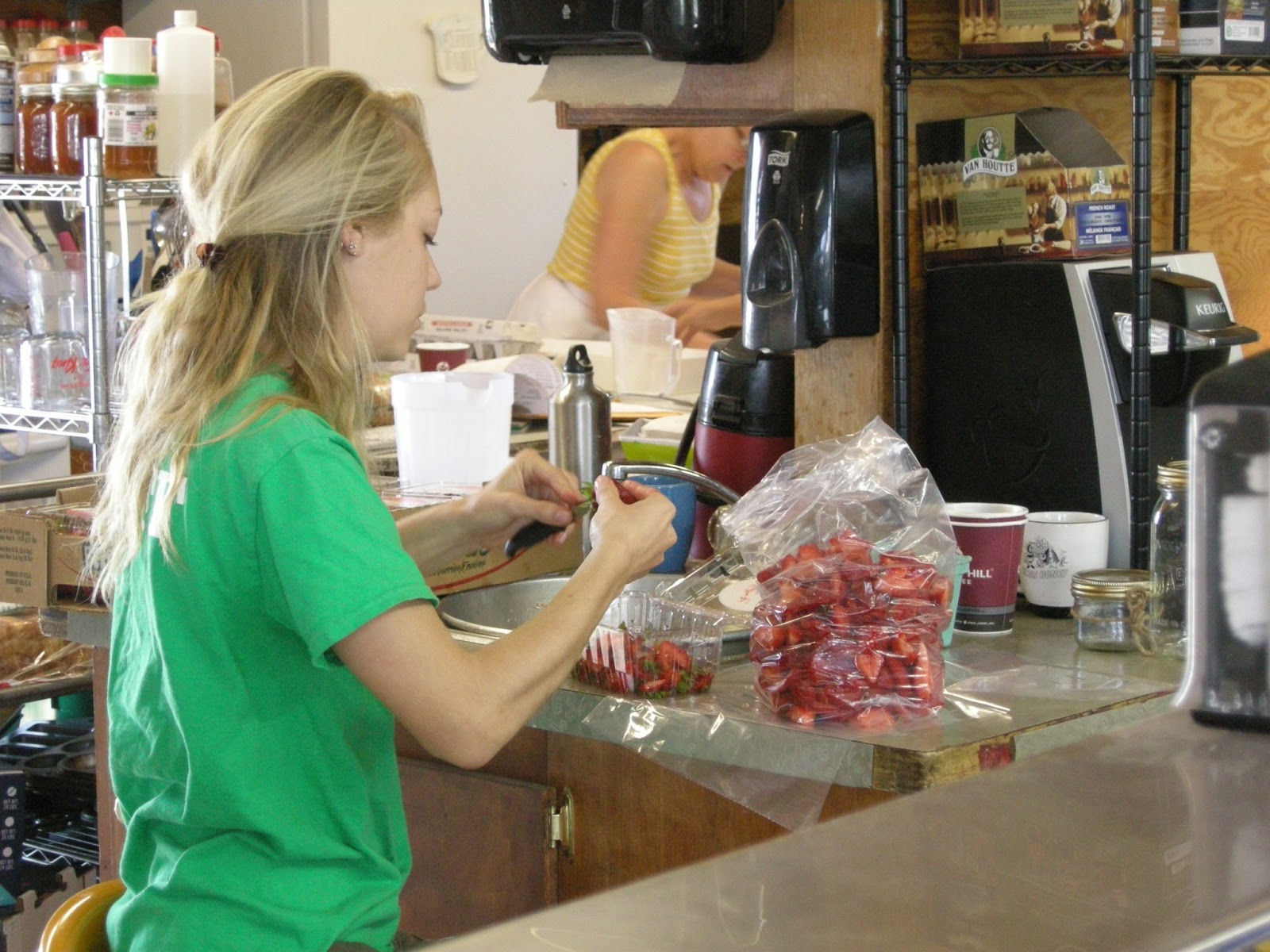 Our bikes are built specifically for touring, and are designed and equipped to haul a load.. They are sturdy (heavy) and have low gearing. Essentially they are the pickup truck of the bike world. Camping gear is carried in the waterproof bag on top the rear rack: tent, sleeping bag, air mattress, etc. Bike clothes, rain gear, spare tire and tube, dishes and utensils are carried in the right rear pannier. All off-bike clothes, electrical chargers, and pot and stove are carried in the left rear pannier. The right front pannier holds tools, stove fuel, and misc. items. The left front pannier is insulated and is used for food and extra drinks, usually Powerade. All of the panniers are waterproof. There are cages for 3 water bottles. All 3 may be needed at times. |